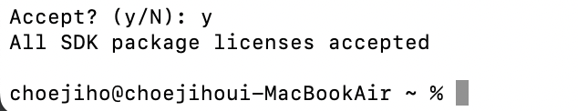 자 이제 마지막으로 terminal에서 flutter doctor를 입력해서