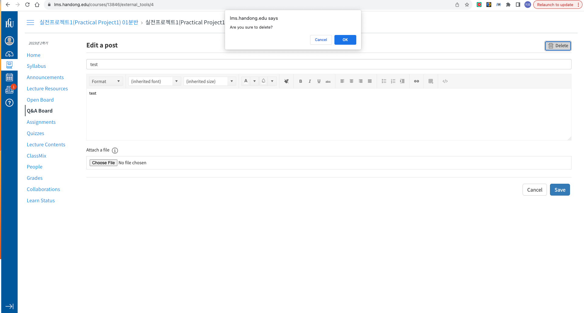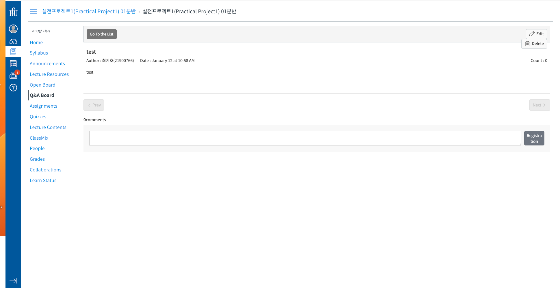 주제 (한동대학교 LMS)
