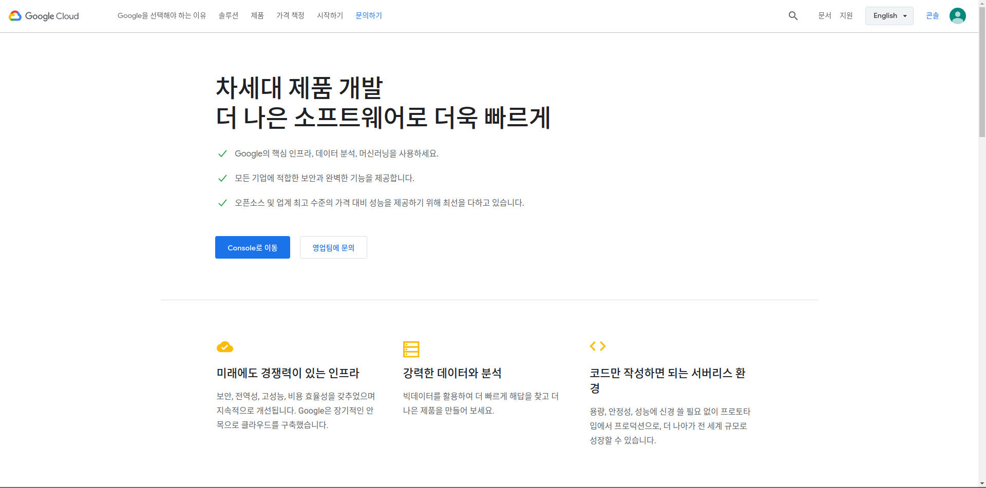 그렇다면 이제 가입을 해보자. https://cloud.google.com/gcp에 접속하여