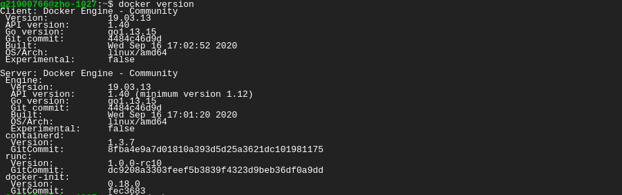 도커가 잘 설치되었다면 docker version이라는 명령어를 통해 설치를 확인한다.