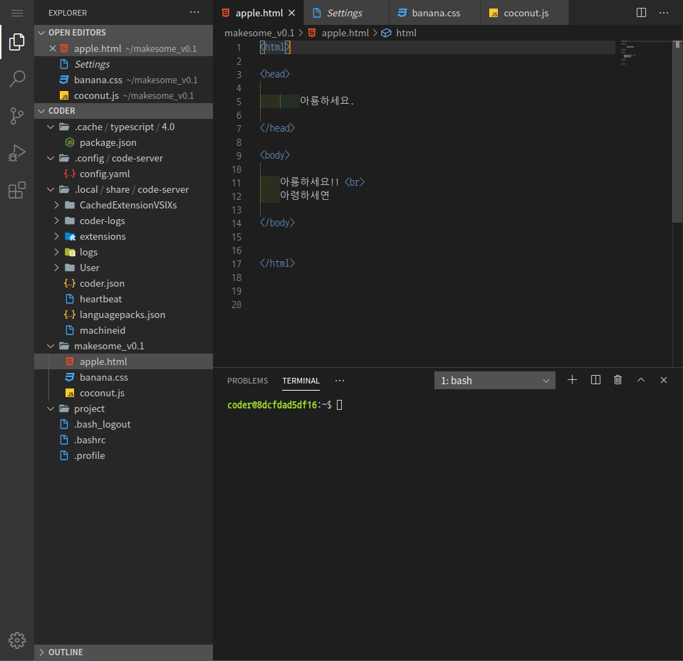 sudo docker run --name code-server -p 80:8080 -v /home/ubuntu/hondytips/:/home/coder/project -e PASSWORD={원하는비밀번호입력} codercom/code-server:latest 를 입력하면 실행이 될 것이다!
