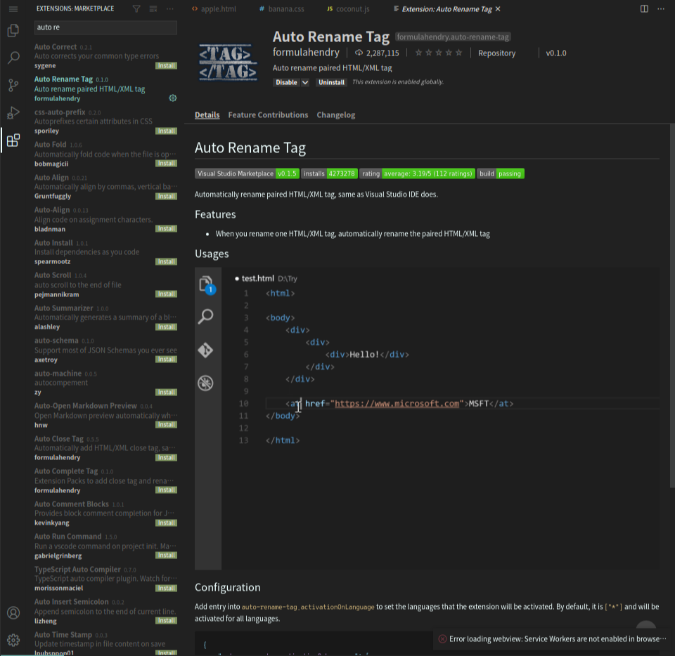 5. Auto Rename Tag - 앞에 태그를 바꾸면 뒤에 태그를 자동으로 바꿔줌