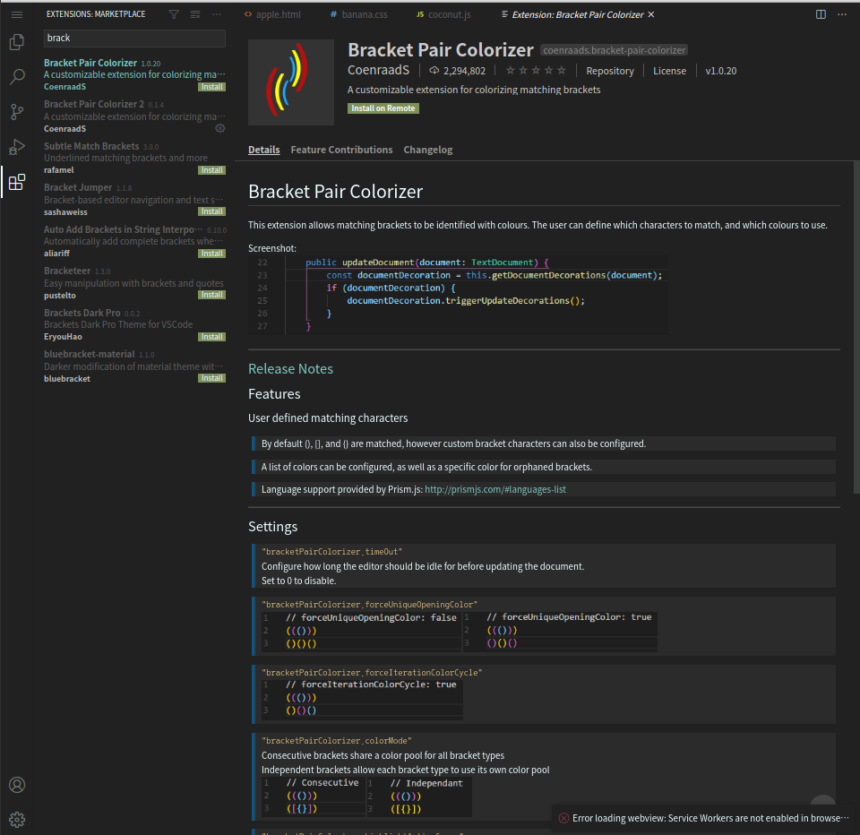 4. Bracket Pari Colorizer - 괄호마다 코드에 색깔을 다르게 줌