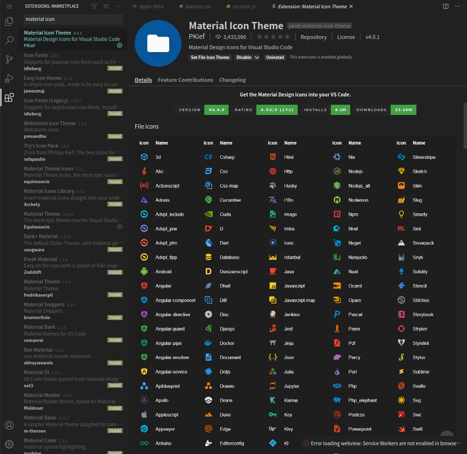 2. Material Icon Theme - 아이콘 테마, 아이콘이 조금 더 생동감 있게 바뀜