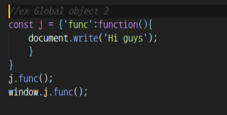 위 코드에서도 j.func(); 그리고 window.j.func(); 는 둘다 동일한 값이 출력된다.