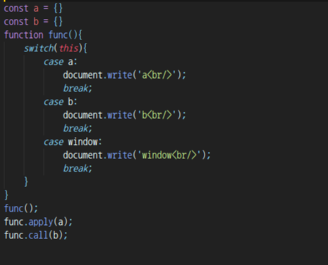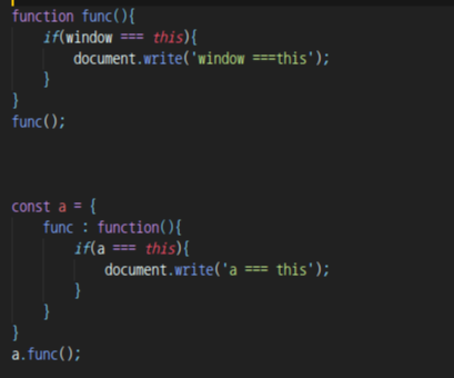 첫 번째 function func(){ 로 시작되는 코드의 결괏값은 window === this이다.