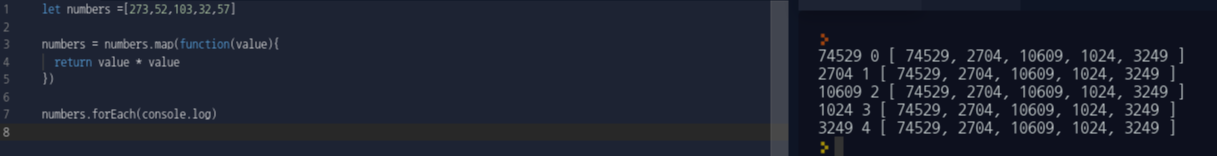-map()메서드는 콜백함수에서 리턴한 값들을 기반으로 새로운 배열을 만드는 함수.
