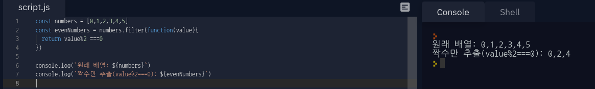 -filter 메소드는 콜백 함수에서 리턴하는 값이 참(true)인 것들만 모아 새로운 배열을 만드는 함수.