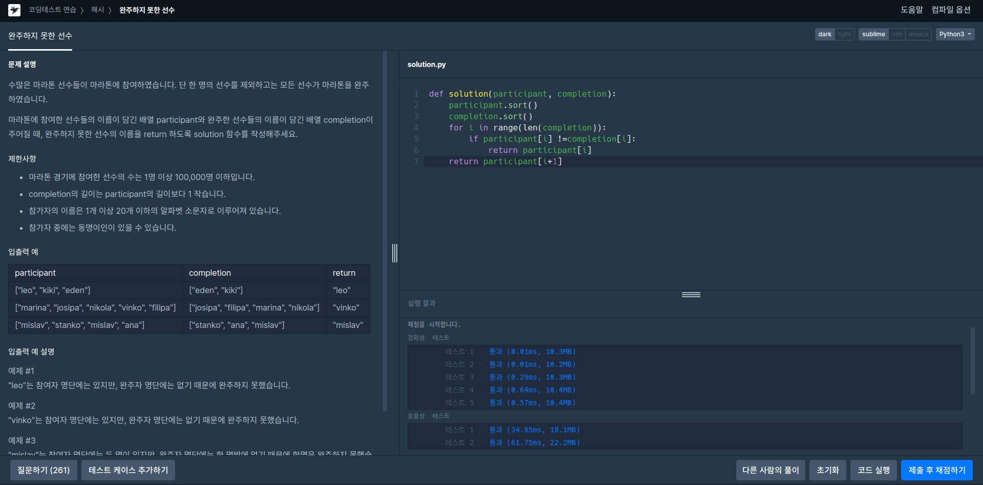 https://programmers.co.kr/learn/courses/30/lessons/42576