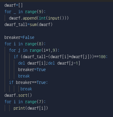 if (dwarf_tall-(dwarf[i]+dwarf[j]))==100: