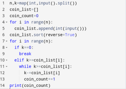 elif k>=coin_list[i]:
