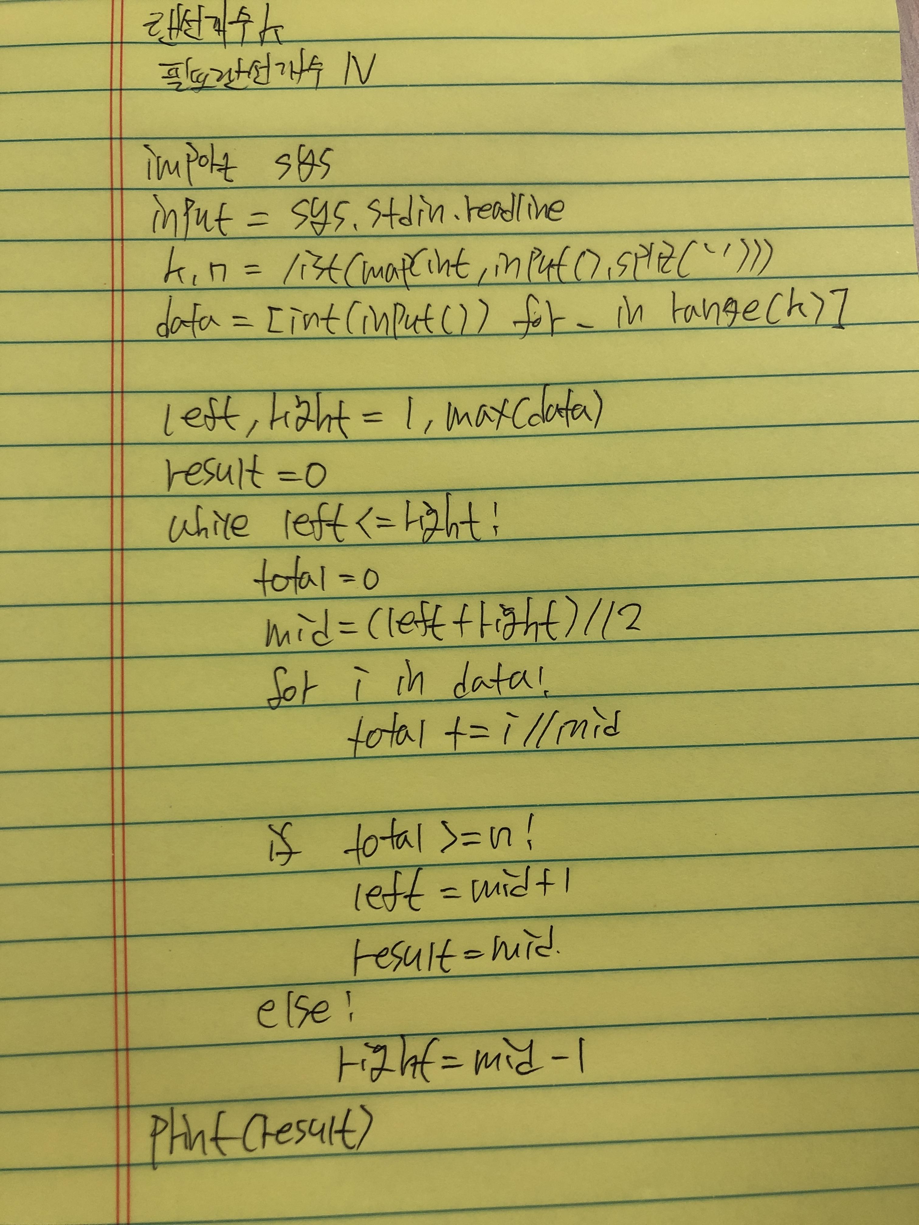 #2 이코테 이진탐색 문제 떡볶이 떡 만들기