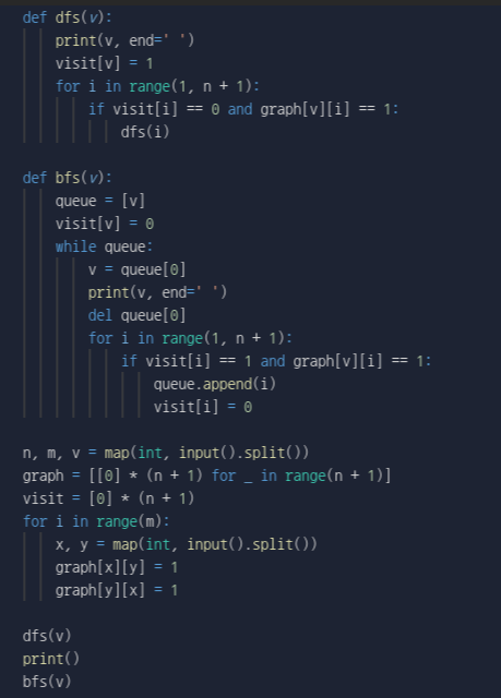 if visit_list2[i] == 0 and graph[v][i] == 1: