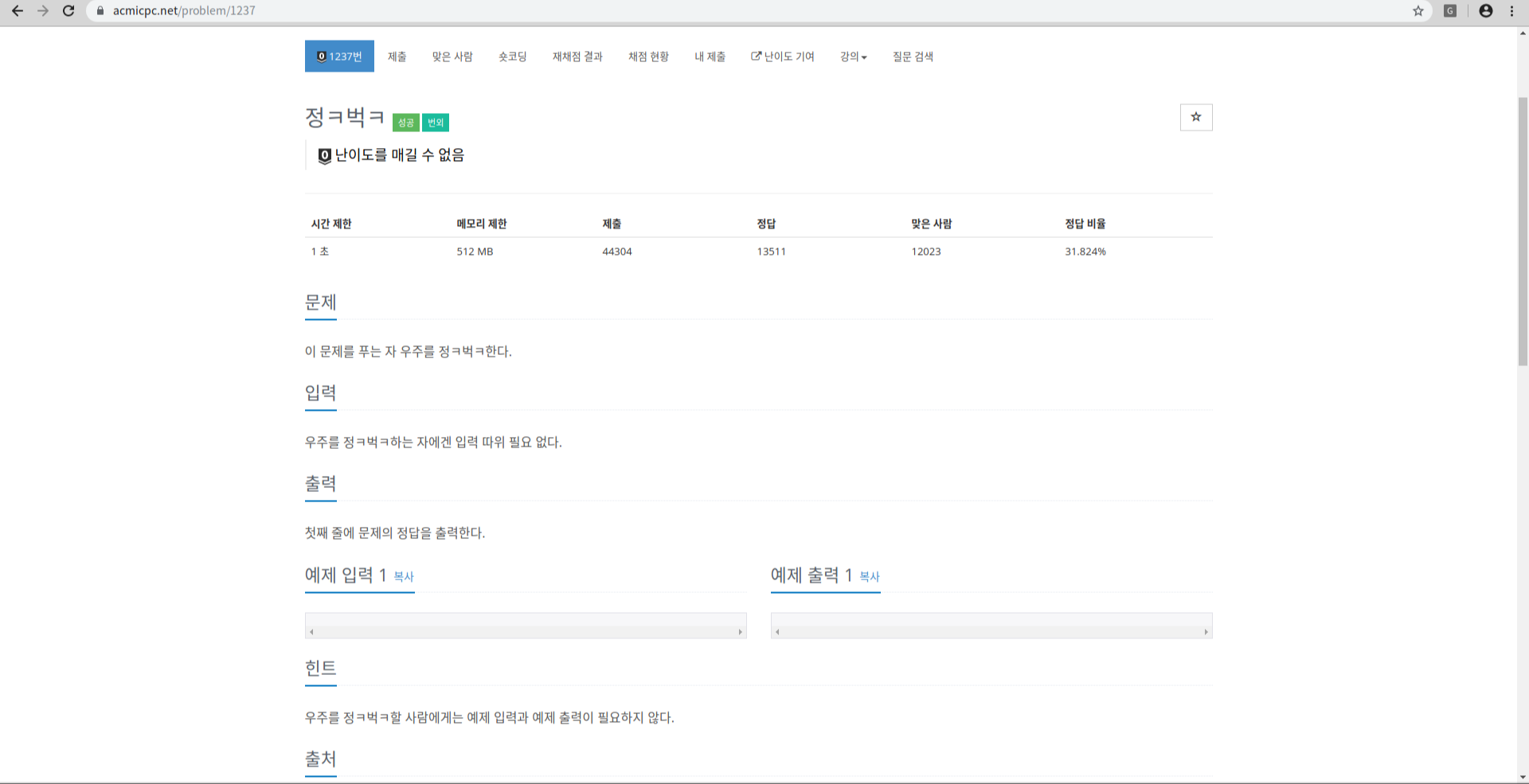 우주를 정ㅋ벅ㅋ할 사람에게는 예제 입력과 예제 출력이 필요하지 않다.